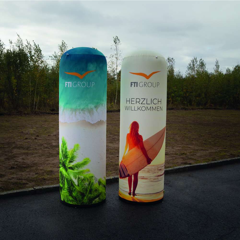 Unsere beeindruckende pneumatische Werbesäule mit einem Durchmesser von 67 cm und einer Höhe von 400 cm. Diese aufblasbare Säule ist perfekt, um Ihre Marke auffällig zu präsentieren. Wählen Sie optional eine LED-Beleuchtung aus, um Ihre Botschaft auch nachts strahlen zu lassen. Für den schnellen und einfachen Aufbau bieten wir eine Handpumpe oder elektrische Luftpumpen an. Jede Säule wird mit einem Ihrem individuellen Druck versehen, der Ihre Marke optimal in Szene setzt. Ideal für Messen, Events oder Promotionen – machen Sie mit unseren Werbesäulen einen unvergesslichen Eindruck!