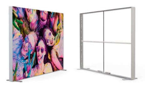 Der MULTIframe SIDELIGHT von Druckerei Hutzler in Grafenwöhr ist ein vollflächig hinterleuchteter LED Rahmen mit einer Bautiefe von nur 12-16 cm (bis 200 cm Höhe: 12cm, ab 250cm Höhe: 16cm Bautiefe). Das einseitig und doppelseitig verwendbare Aluminiumrahmenprofil eignet sich dank der stabilen Füße hervorragend für den Einsatz als Raumteiler. Durch die spezielle Linsenform der LED Module kann man trotz der schmalen Bautiefe keinerlei Lichtpunktbildung auf der Stoffoberfläche entdecken – das Motiv wird einheitlich und schattenfrei dargestellt. Die Stoffgrafiken sind mit Gummilippen versehen, die ihnen einen perfekten Halt im Rahmensystem ohne Falten geben. Darüber hinaus ist mit diesem System ein einfacher und rascher Grafikwechsel möglich. Nicht nur die Leuchtkraft von ca. 5000 lm, sondern auch die homogene Ausleuchtung machen den MULTIframe SIDELIGHT zu einem Leuchtrahmen, der alle ähnlichen Produkte in den Schatten stellt. Alle Systemteile sind auch als Einzelteile erhältlich.