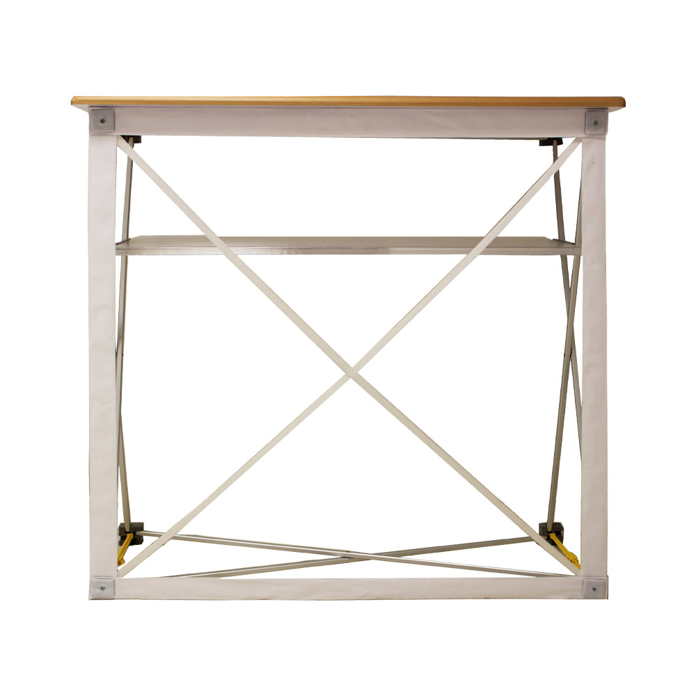 Die Theke verfügt über ein integriertes Regal zur praktischen Aufbewahrung. Für den einfachen Transport und die bequeme Lagerung wird die Textilfalttheke mit einer Tragetasche geliefert. Ideal für Messen, Ausstellungen und Events, bei denen eine professionelle und flexible Empfangstheke benötigt wird.