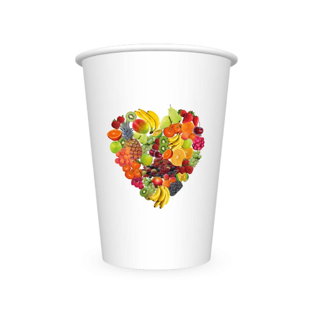 Der Druck erfolgt mit lebensmittelechten Farben. Die Becher sind geruchs- und geschmacksneutral.